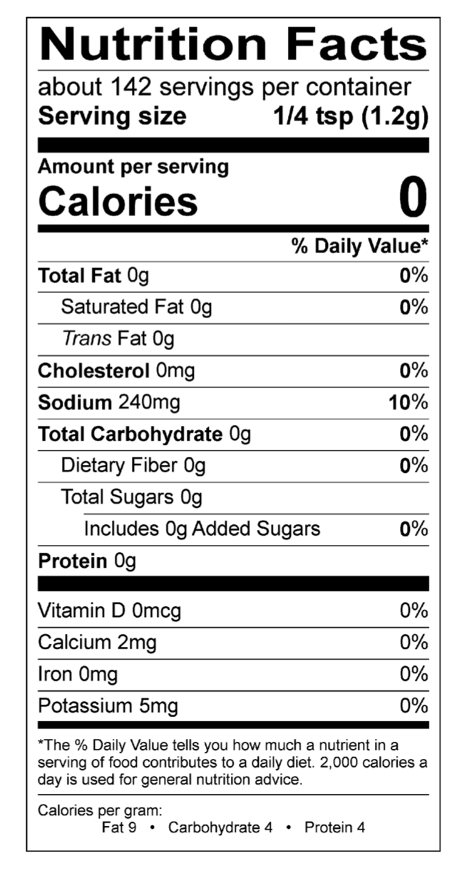 Coffee Rub: Salt, brown sugar, spice, ground coffee, garlic, silicon dioxide (to prevent caking).